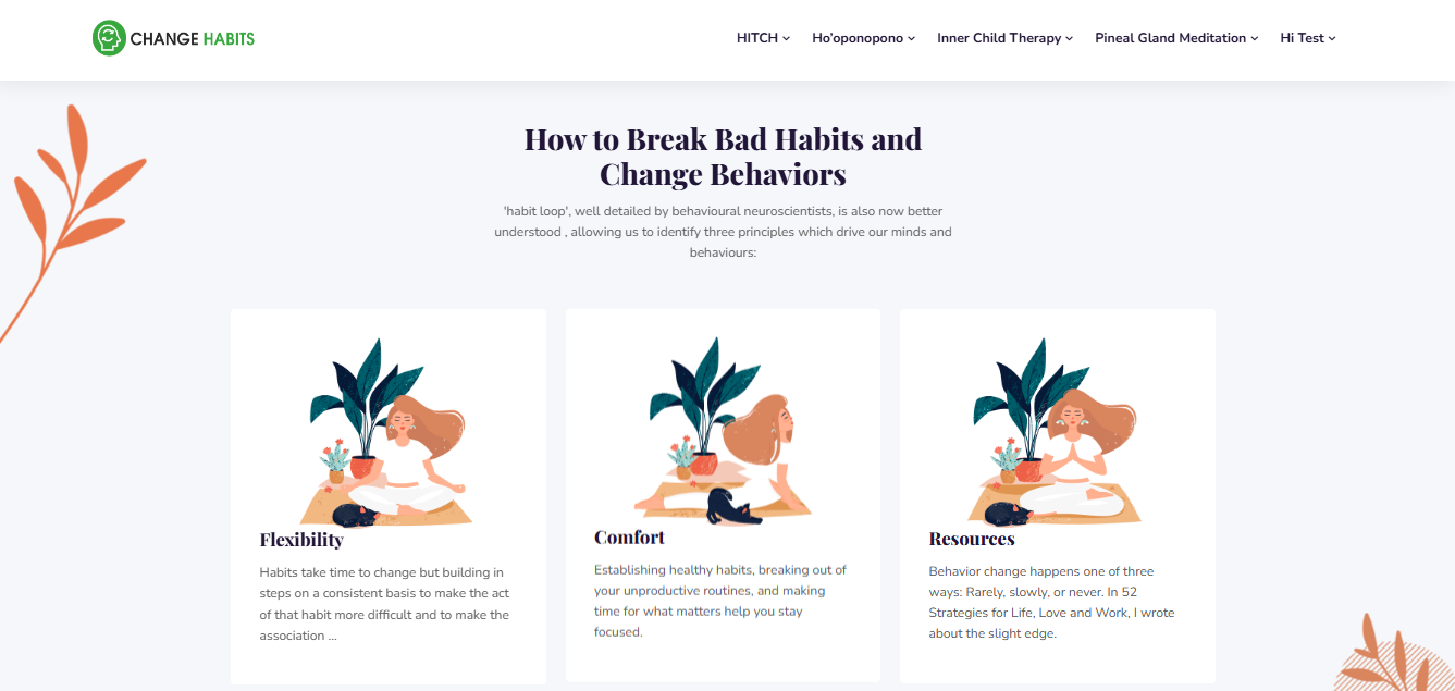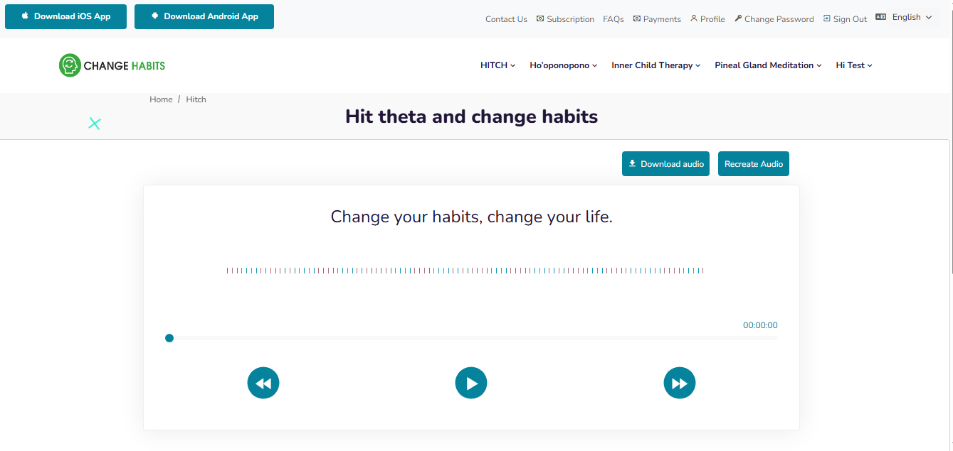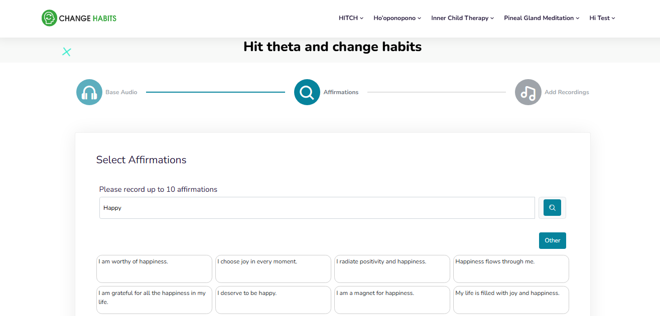 www.changehabits.org was created with the intention of giving insight into various deep topics like how habits are formed from early stages of life, power of mind, levels of Subconscious, accessing theta level of subconscious, neuroplasticity, unlearn the old habits and plant new habits. It also provides self-assessment tool to the individuals so that they can be able to search in our AI tool for positive affirmations, prepare customized audio and listen to it while in sleep/theta stage.